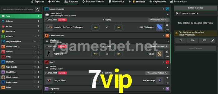 A aposta 7vip oferece aos jogadores a experiência mais conveniente de apostas em eSports!
